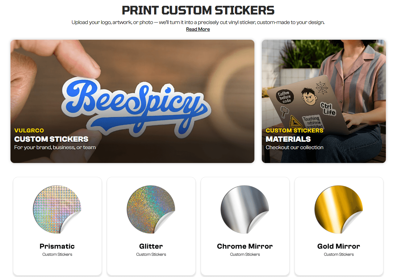VulgrCo's buyers split into two distinct groups: individual consumers ordering custom stickers for personal expression, events, and gifts — and B2B buyers, small brands, artists, and event organisers ordering in bulk for packaging and merchandise. The store was built to speak to both, with quantity-based pricing that rewards larger orders and product copy that addresses both use cases without making either audience feel like an afterthought.